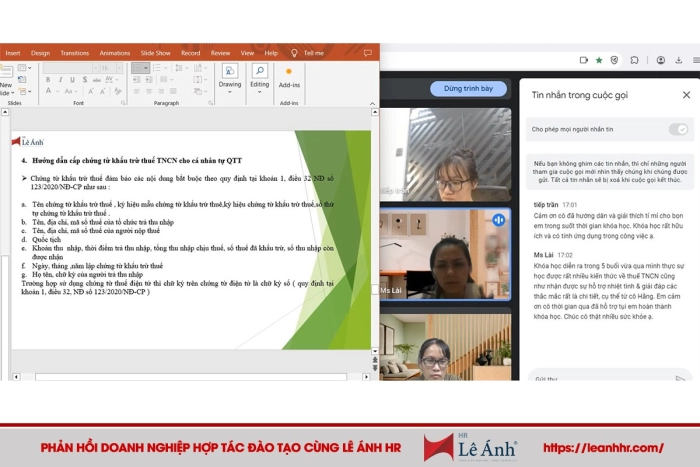 Bên cạnh hoạt động triển khai các lớp học nhân sự trực tiếp tại các cơ sở, Lê Ánh HR còn được đánh giá cao qua hình thức đào tạo online với chất lượng giống như học trực tiếp vì triển khai cùng nội dung và đội ngũ giảng viên.